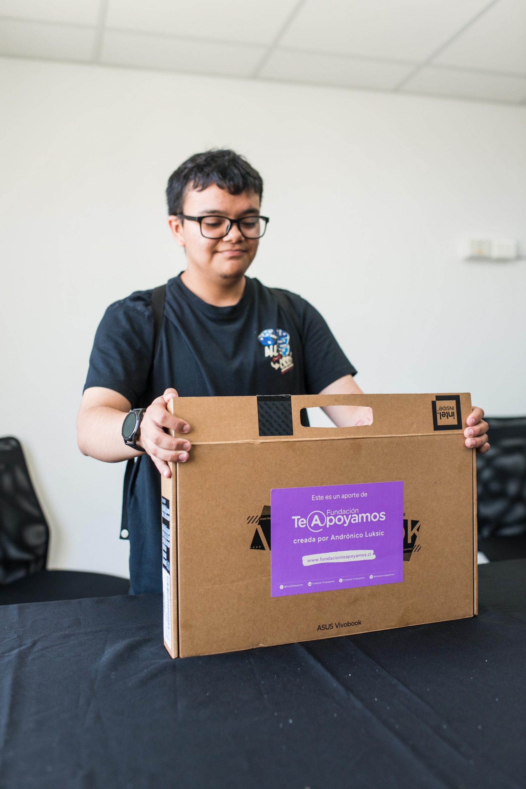 La donación fue realizada por Fundación Te Apoyamos, creada por el filántropo chileno Andrónico Luksic, en coordinación con el Servicio de Protección; con el objetivo de entregar herramientas tecnológicas que faciliten la realización de trabajos, evaluaciones y actividades a los estudiantes, quienes ya han demostrado un destacado desempeño académico.